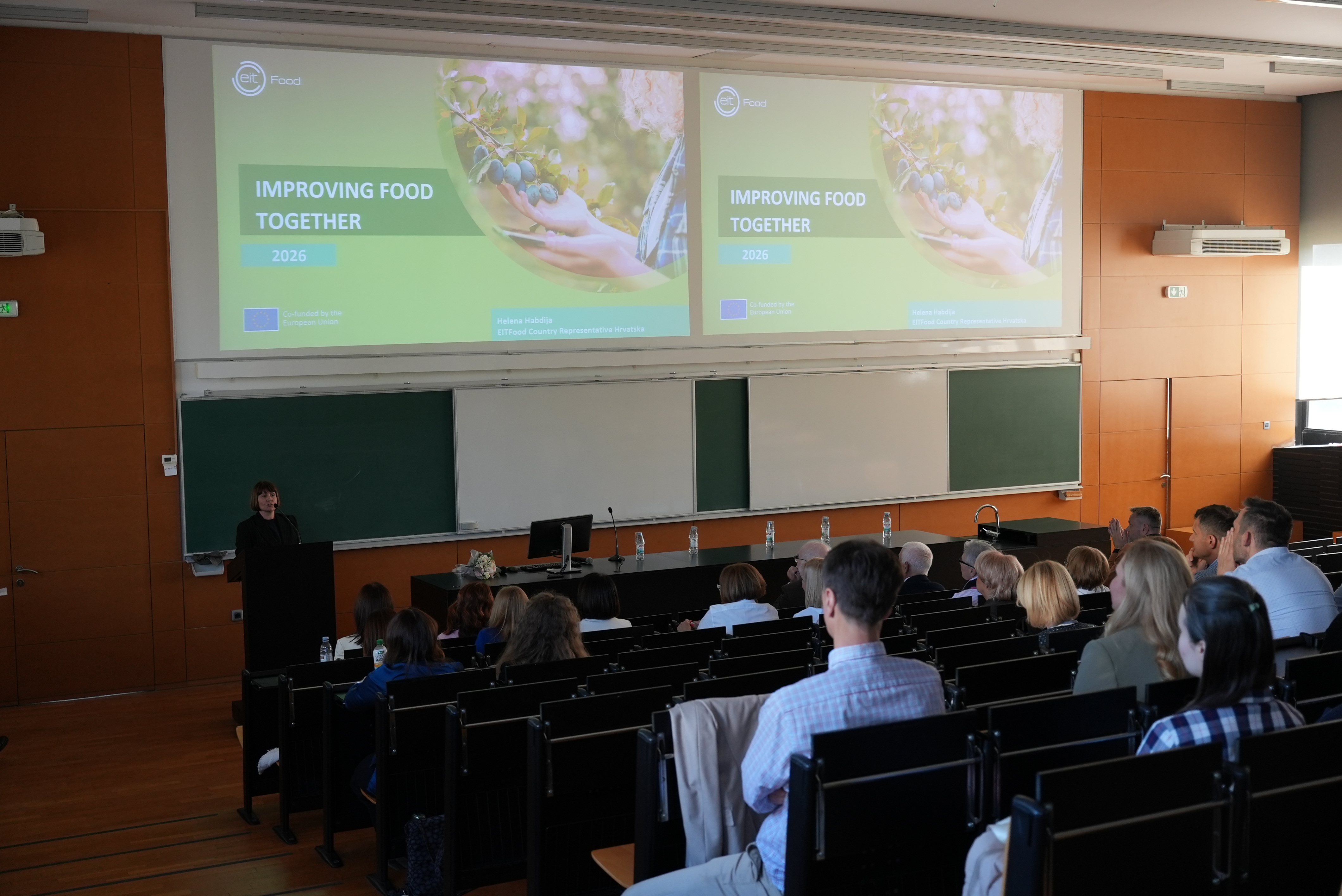 U nastavku programa, Helena Habdija predstavila je EIT programe, naglasivši mogućnosti razvoja poduzetničkih ideja u prehrambenom sektoru kroz inicijative poput EWA programa i EIT Challenge Labs.